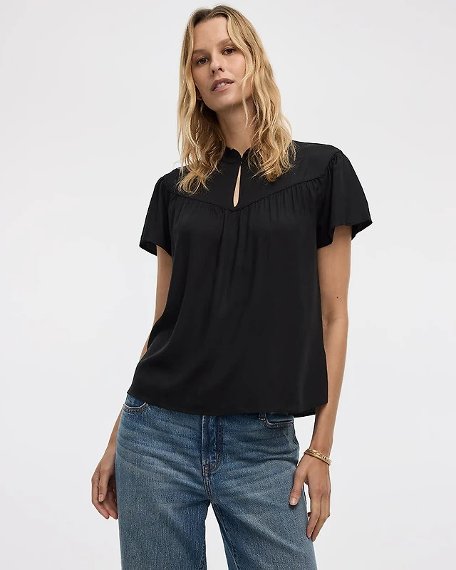 Puffy-Elbow-Sleeve Crew-Neck Top