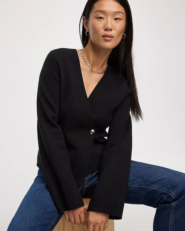Long-Sleeve Sweater with Half-Zip Mock Neckline
