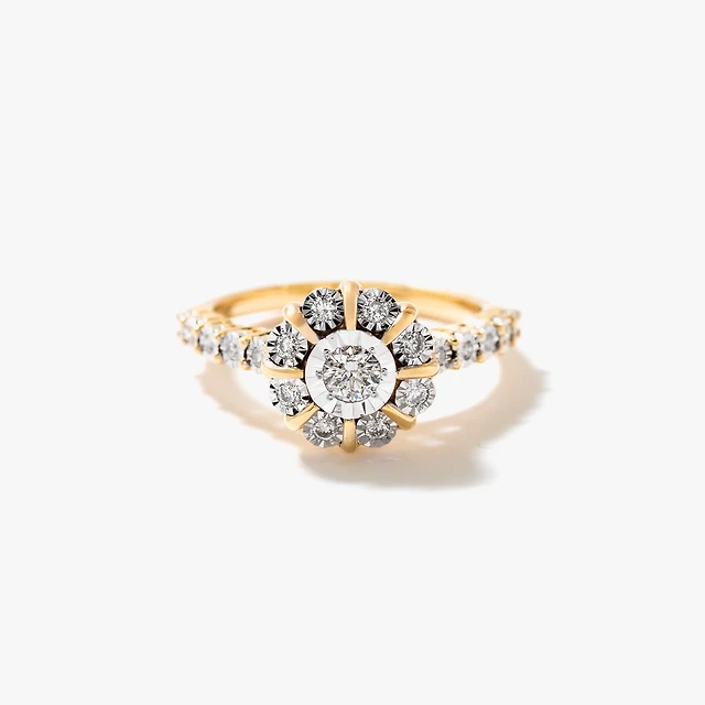 Diamond Cluster Ring 10K Yellow and White Gold (0.25 ct tw)