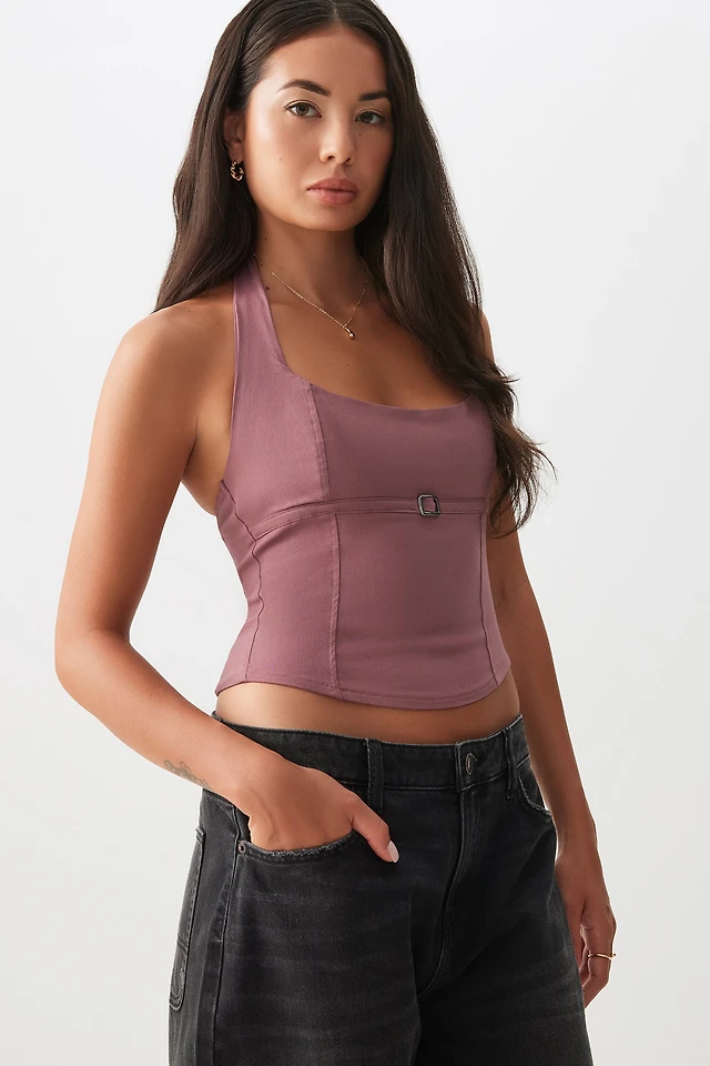 Ardene Bengaline Halter Tank Top in Medium Pink | Size | Rayon/Nylon/Elastane