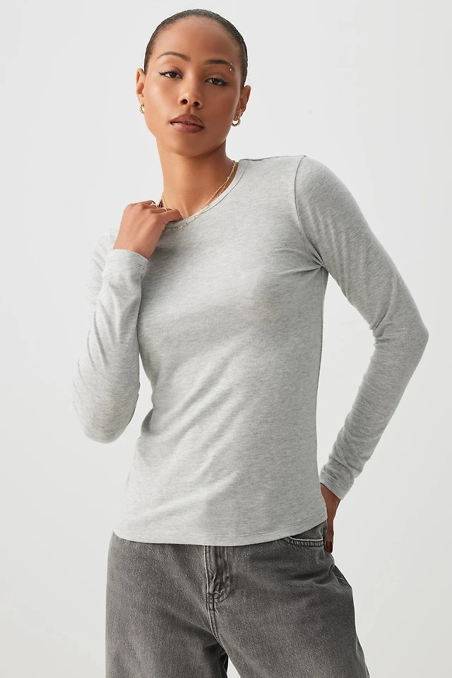 Ardene Brushed Jersey Long Sleeve T-Shirt in | Size | Cotton/Elastane