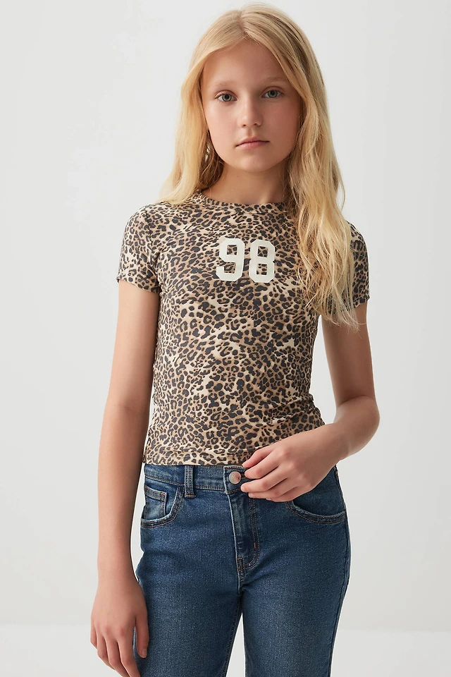 Ardene Kids Layered Graphic T-Shirt in Grey | Size | Cotton/Elastane | Eco-Conscious
