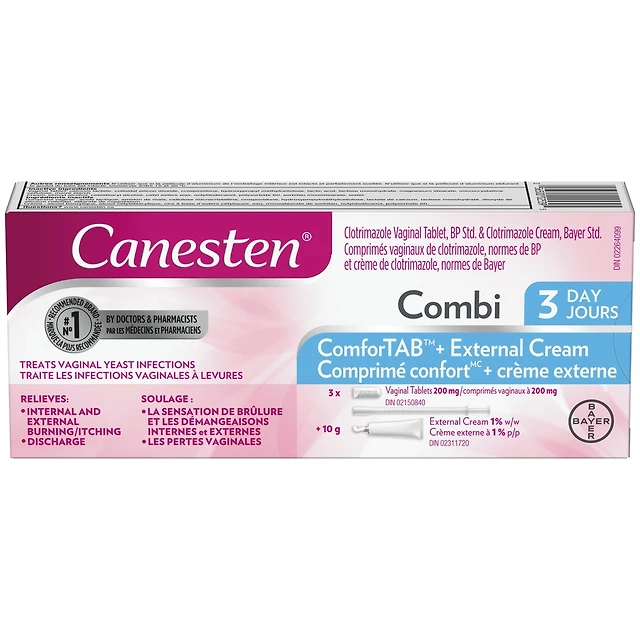 Canesten Combi 3 Day ComforTAB Vaginal Tablet and External Cream for Yeast Infection, 3 Treatments