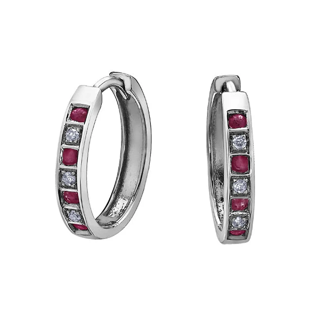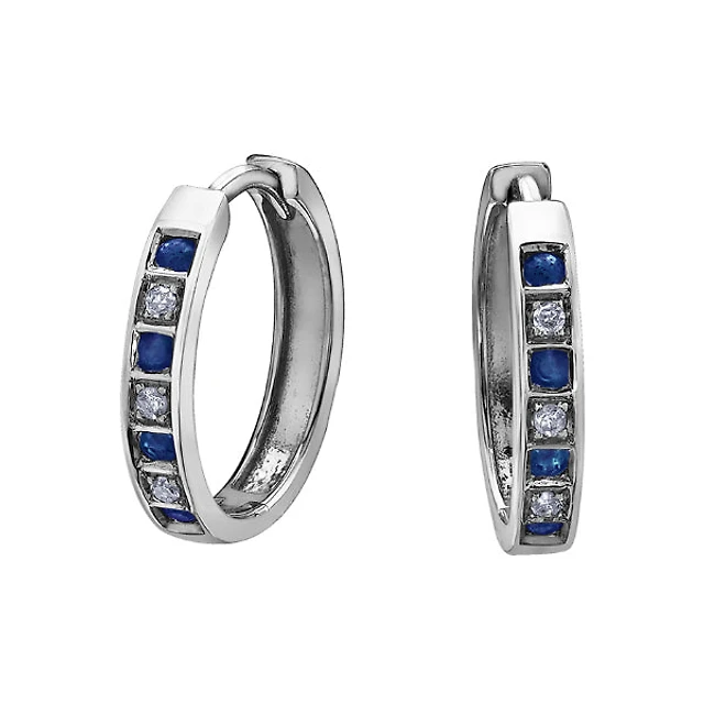 10k White Gold Diamond & Blue Sapphire Huggie Earrings