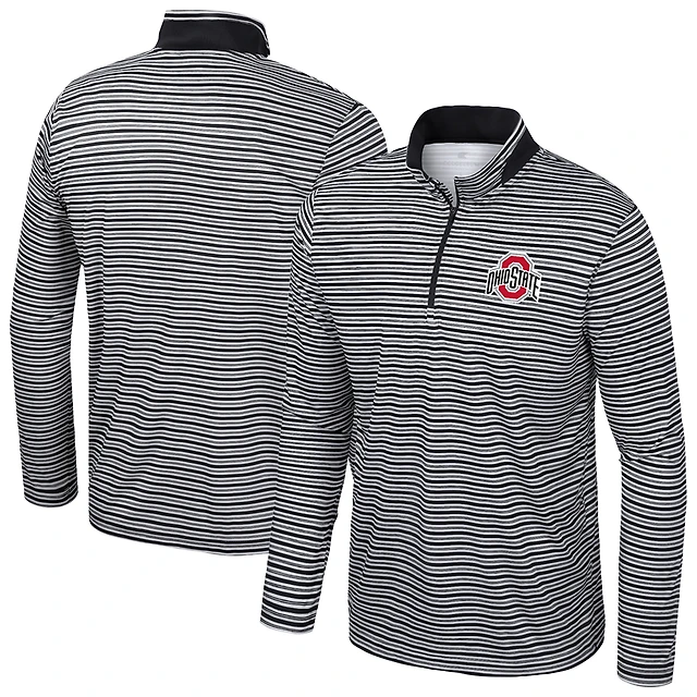 Men's Colosseum Black Ohio State Buckeyes Striped Quarter-Zip Top