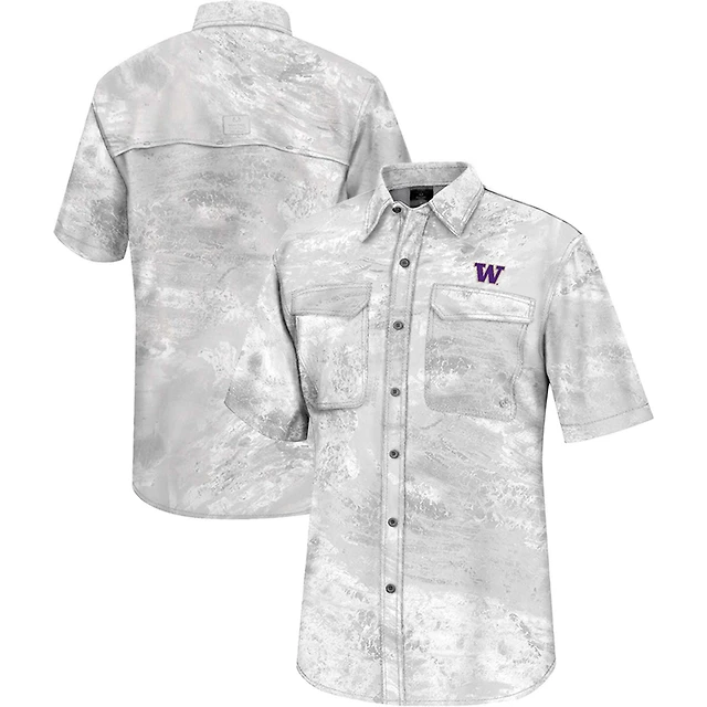 Men's Colosseum White Washington Huskies Realtree Aspect Charter Full-Button Fishing Shirt
