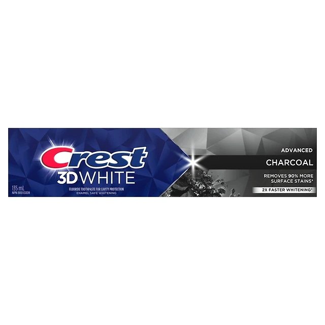 Crest 3D White Whitening Therapy Charcoal Deep Clean Fluoride Toothpaste, Invigorating Mint, 110 mL