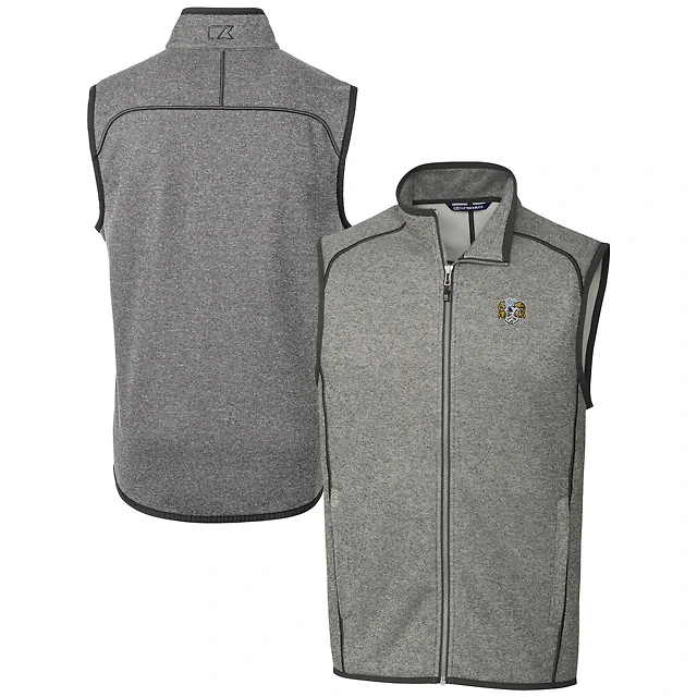 Men's Cutter & Buck Heather Gray North Carolina Tar Heels Vault Mainsail Sweater Knit Fleece Full-Zip Vest