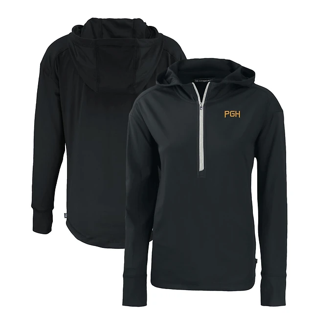 Women's Cutter & Buck White Pittsburgh Pirates City Connect Virtue Eco Pique Half-Zip 3/4 Sleeve Pullover Hoodie