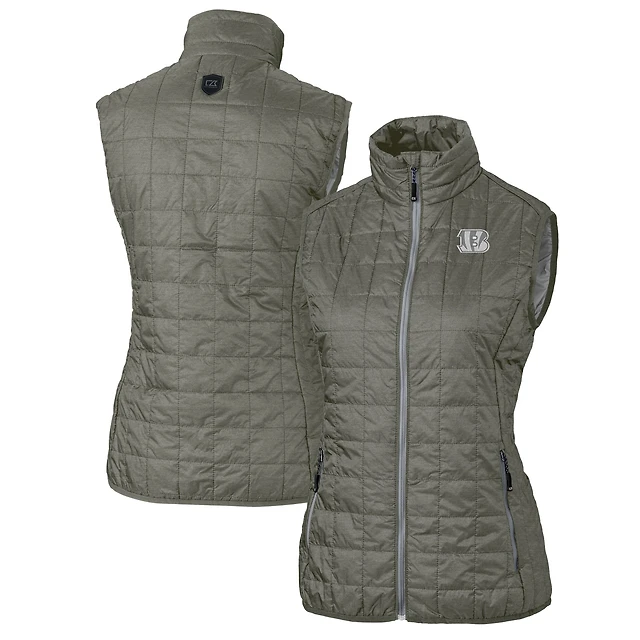 Women's Cutter & Buck Heather Gray Cincinnati Bengals Rainier PrimaLoft Eco Insulated Full-Zip Puffer Vest