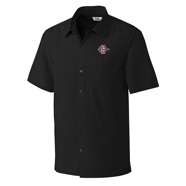 Men's Cutter & Buck Black San Diego State Aztecs Big Tall Solana Check Camp Button-Up Shirt