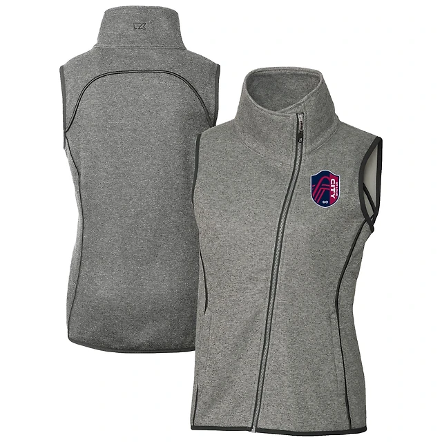 Women's Cutter & Buck Heather Gray St. Louis City SC Mainsail Sweater-Knit Full-Zip Asymmetrical Vest