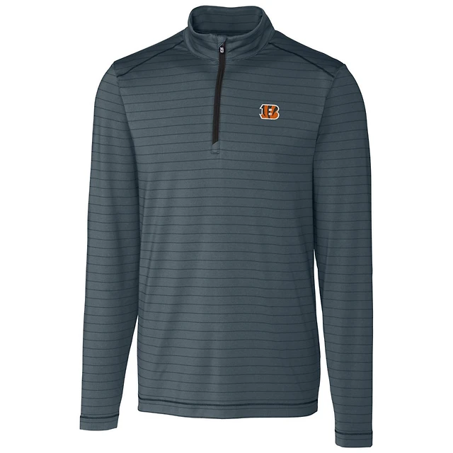 Men's Cutter & Buck Heather Black Cincinnati Bengals Holman Stripe Quarter-Zip Pullover Jacket