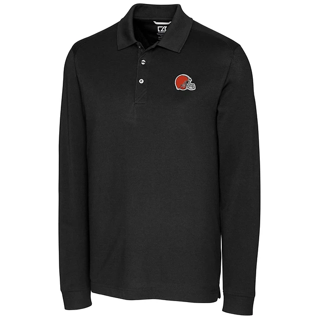 Men's Cutter & Buck Black Cleveland Browns Big Tall Advantage Long Sleeve Polo