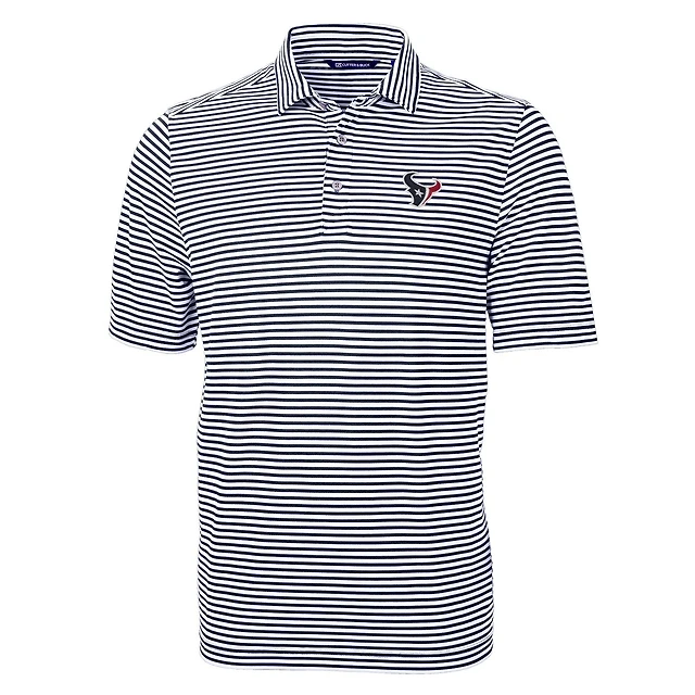 Men's Cutter & Buck Navy Houston Texans Virtue Eco Pique Stripe Recycled Polo