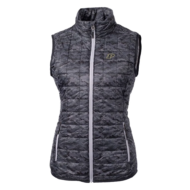 Women's Cutter & Buck Black Purdue Boilermakers Eco Full-Zip Puffer Vest