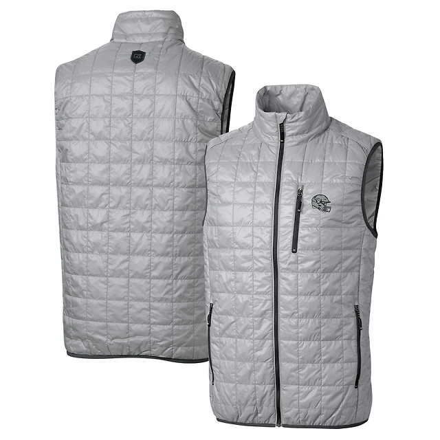 Men's Cutter & Buck Silver Las Vegas Raiders Helmet Rainier PrimaLoft Eco Insulated Full-Zip Puffer Vest