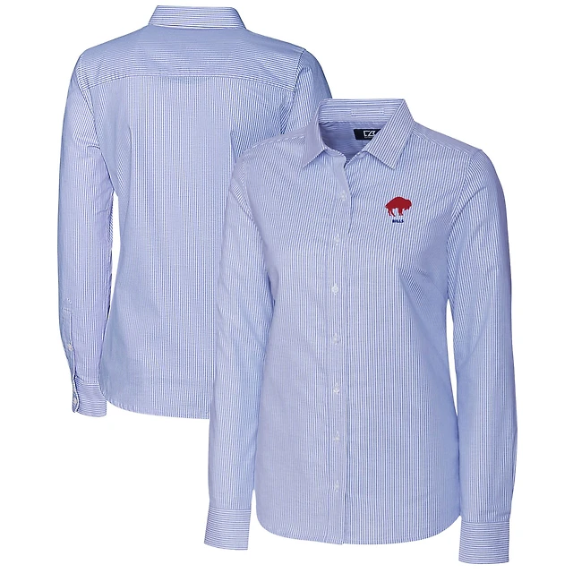 Women's Cutter & Buck Powder Blue Buffalo Bills Throwback Logo Stretch Oxford Stripe Long Sleeve Button-Up Shirt