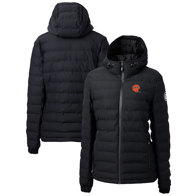 Women's Cutter & Buck Black Cleveland Browns Throwback Logo Rainier Primaloft Eco Full-Zip Hoodie Long Coat