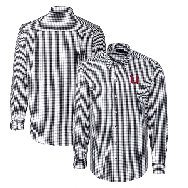 Men's Cutter & Buck Charcoal Utah Utes Easy Care Stretch Gingham Big Tall Long Sleeve Button-Down Shirt