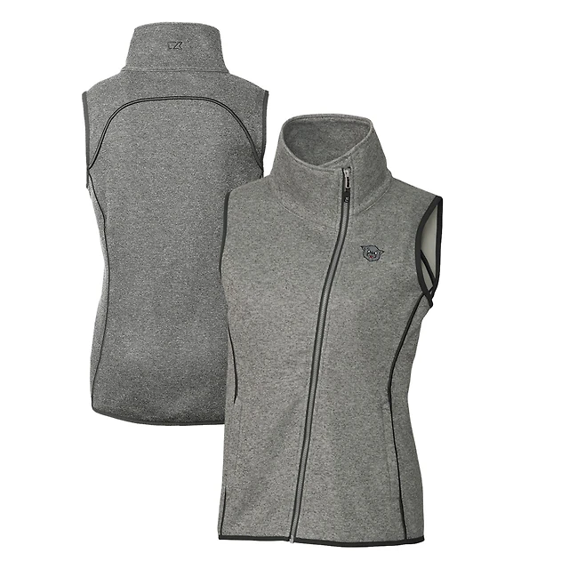 Women's Cutter & Buck Heather Charcoal Delaware Fightin' Blue Hens Mainsail Basic Sweater-Knit Full-Zip Vest