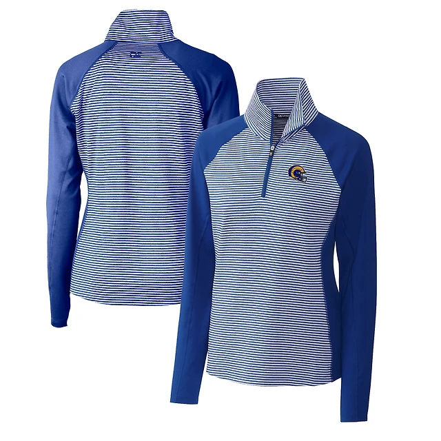 Women's Cutter & Buck Royal Los Angeles Rams Helmet Logo DryTec Forge Tonal Stripe Stretch Half-Zip Top