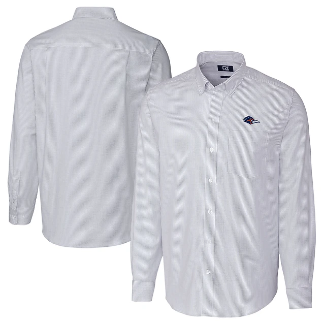 Men's Cutter & Buck Light Blue UTSA Roadrunners Oxford Stretch Stripe Long Sleeve Tri-Blend Button-Down Shirt