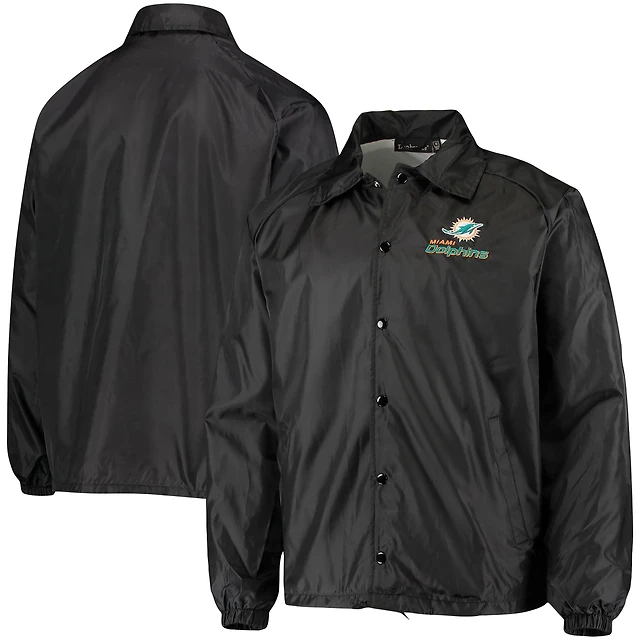 Men's Black Miami Dolphins Coaches Classic Raglan Full-Snap Windbreaker Jacket