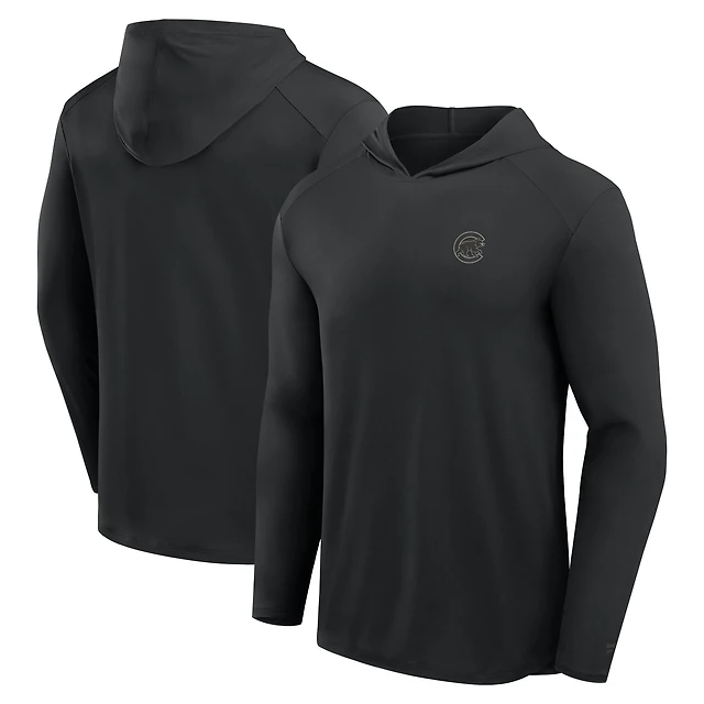 Men's Fanatics Black Chicago Cubs Front Office Power Mono Long Sleeve Hoodie T-Shirt
