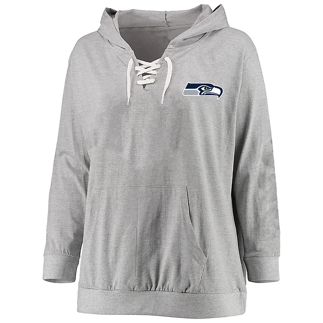 Women's Fanatics Heather Gray Seattle Seahawks Plus Lace-up Pullover Hoodie