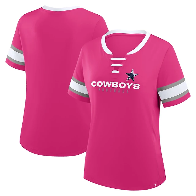 Women's Fanatics Pink Dallas Cowboys Redzone Draw Play Athena Lace-Up T-Shirt