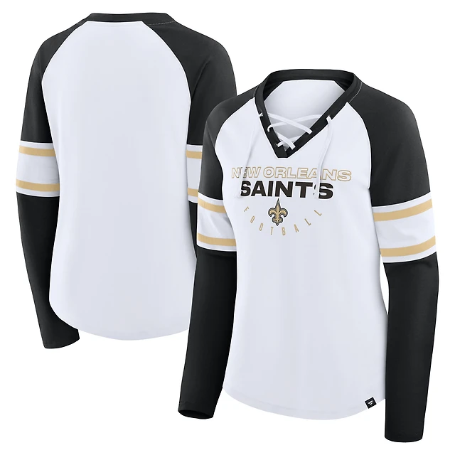 Women's Fanatics White/Black New Orleans Saints Redzone Blitz Package Raglan Lace-Up V-Neck Long Sleeve T-Shirt