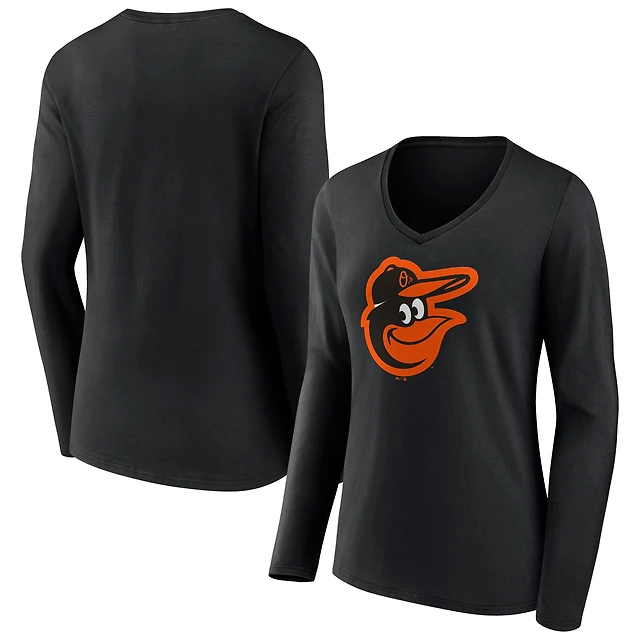 Women's Fanatics Black Baltimore Orioles Official Logo V-Neck Long Sleeve T-Shirt
