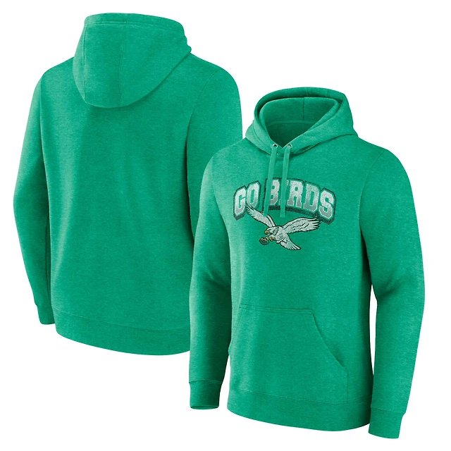 Men's Fanatics Kelly Green Philadelphia Eagles Gridiron Classics Go Birds Vintage Arch Pullover Hoodie
