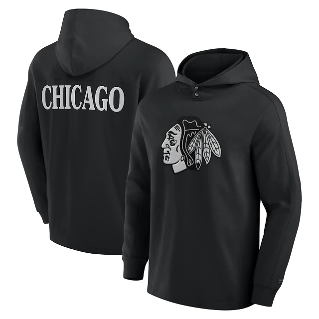 Men's Fanatics Black Chicago Blackhawks Elements Blaze Tri-Blend Long Sleeve Hoodie T-Shirt