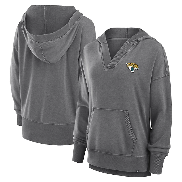 Women's Fanatics Heather Charcoal Jacksonville Jaguars Initiative Snow Wash French Terry V-Neck Pullover Hoodie