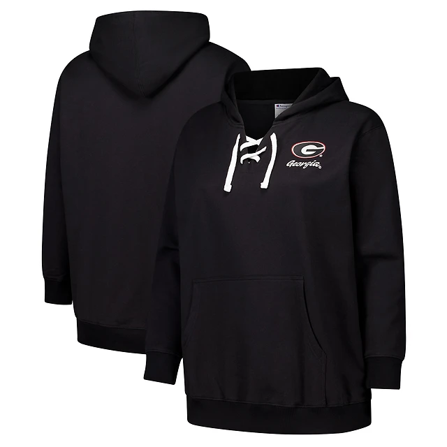 Women's Fanatics Black Georgia Bulldogs Plus Scripy Lace-Up V-Neck Hoodie
