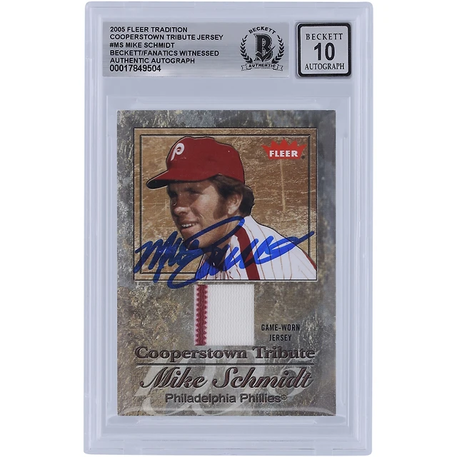 Mike Schmidt Philadelphia Phillies Autographed 2005 Fleer Tradition Cooperstown Tribute Jersey Relic #CT-MS Beckett Fanatics Witnessed Authenticated 10 Card