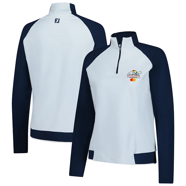 Women's FootJoy White/Navy Arnold Palmer Invitational Striped Raglan Quarter-Zip Jacket