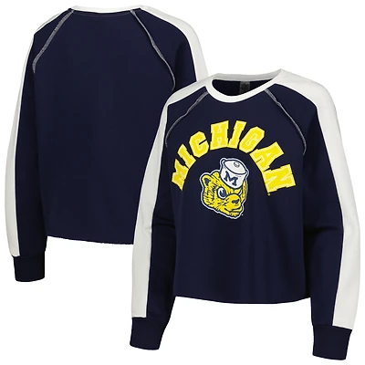 Women's Gameday Couture Navy Michigan Wolverines Blindside Raglan Cropped Pullover Sweatshirt