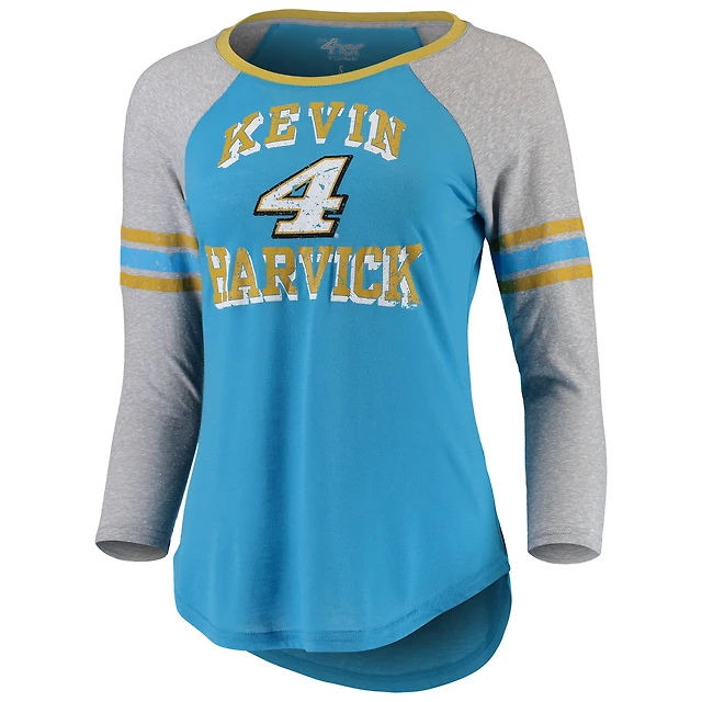 Women's G-III 4Her by Carl Banks Light Blue Kevin Harvick On The Field 3/4-Sleeve Raglan T-Shirt