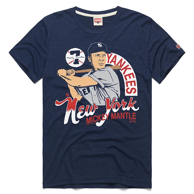 Men's Homage Mickey Mantle Navy New York Yankees Signature Tri-Blend T-Shirt