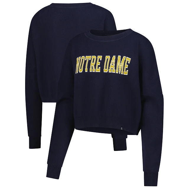 Women's Hype and Vice Navy Notre Dame Fighting Irish Oversized Cropped Ivy Knit Pullover Sweater