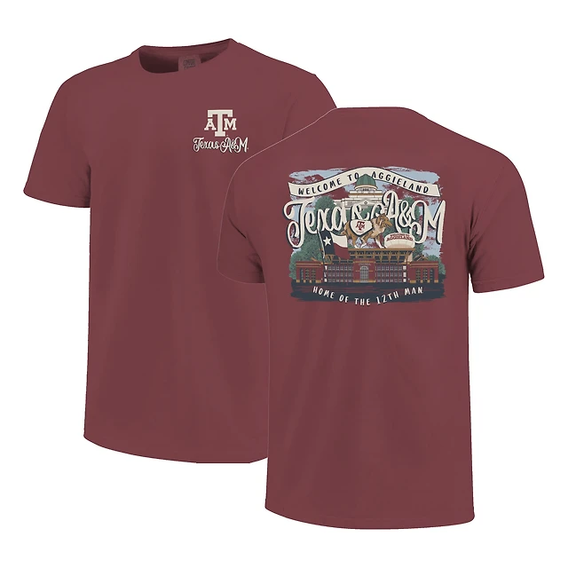 Women's Maroon Texas A&M Aggies Comfort Colors Campus Scene Drawing Script T-Shirt