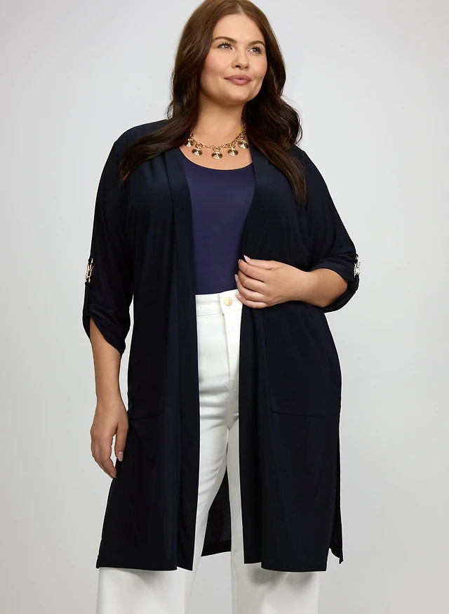 Open-Front Cardigan & Wide-Leg Jeans
