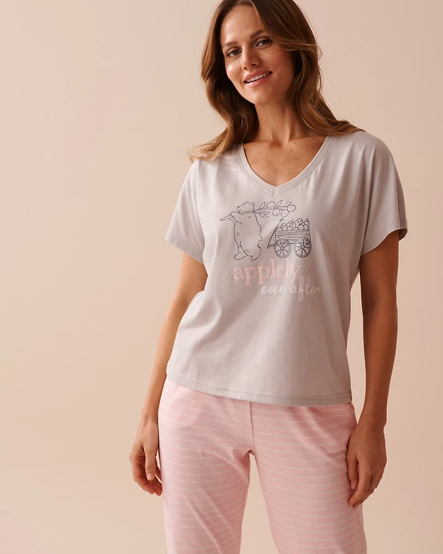 Bow Print Cotton V-neck T-shirt
