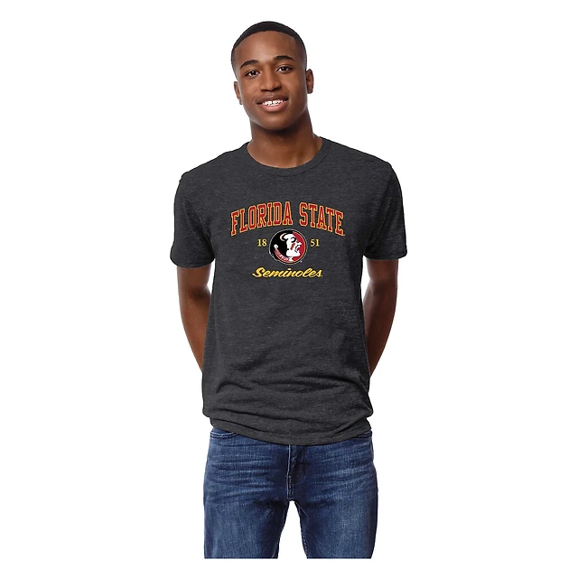 Men's League Collegiate Wear Charcoal Florida State Seminoles Arch Script Victory Falls Tri-Blend T-Shirt