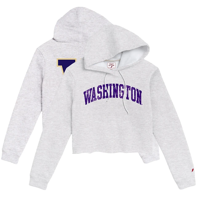 Women's League Collegiate Wear Ash Washington Huskies 2-Hit 1636 Cropped Pullover Hoodie