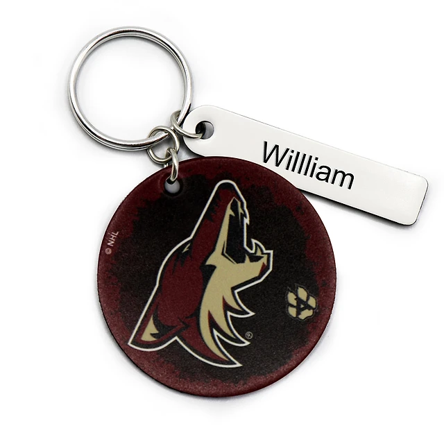 Black Arizona Coyotes Personalized Leather Round Keychain
