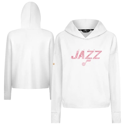 Women's Levelwear White Utah Jazz Mother's Day Sweet Floral Cropped Tri-Blend Pullover Hoodie